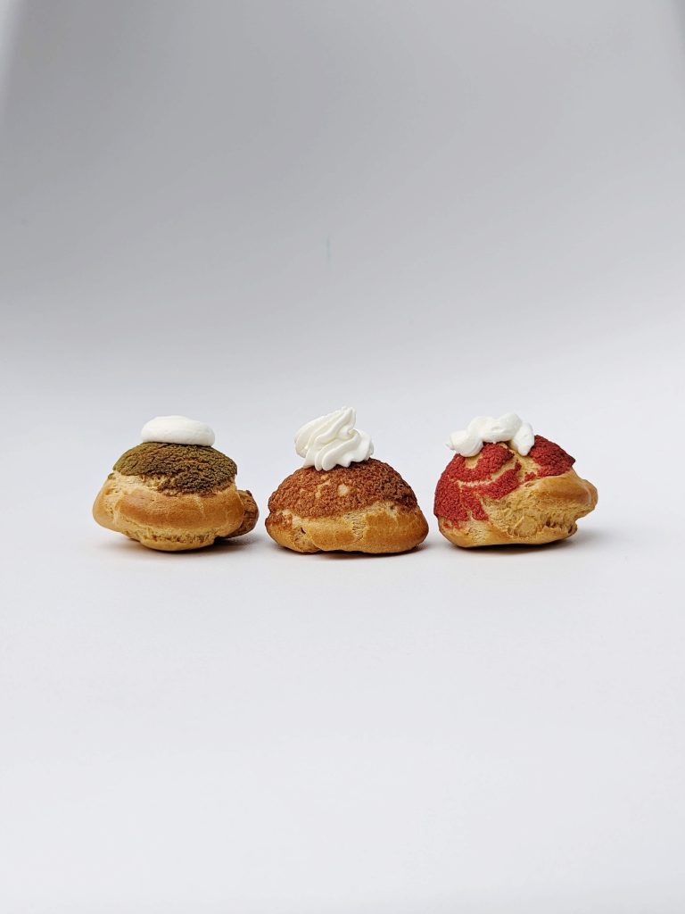 optional: you can decorate or top off each choux au craquelin if you want with some whipped cream or any decorative elements of choice. in the photos above, i’ve added some whipped cream to each piped choux au craquelin.