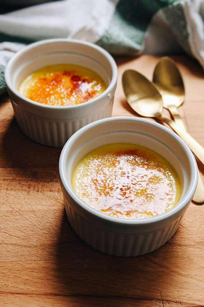 - Just before serving, sprinkle a teaspoon of sugar per ramekin and burn with a small kitchen torch. Enjoy immediately.
